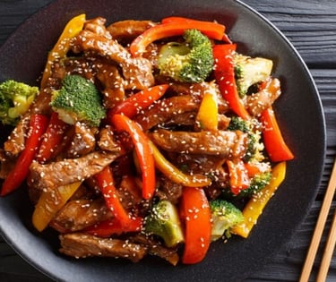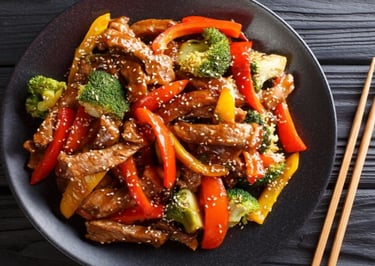 Asie : Filet de bœuf, légumes, shitaké