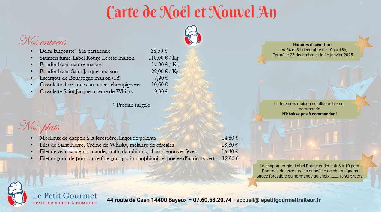 Pour les fêtes de fin d'année 2024, plongez dans l'ambiance festive avec notre sélection de produits exquis. Notre carte de Noël vous propose une gamme alléchante, mettant en avant le foie gras, incontournable des repas de fête.